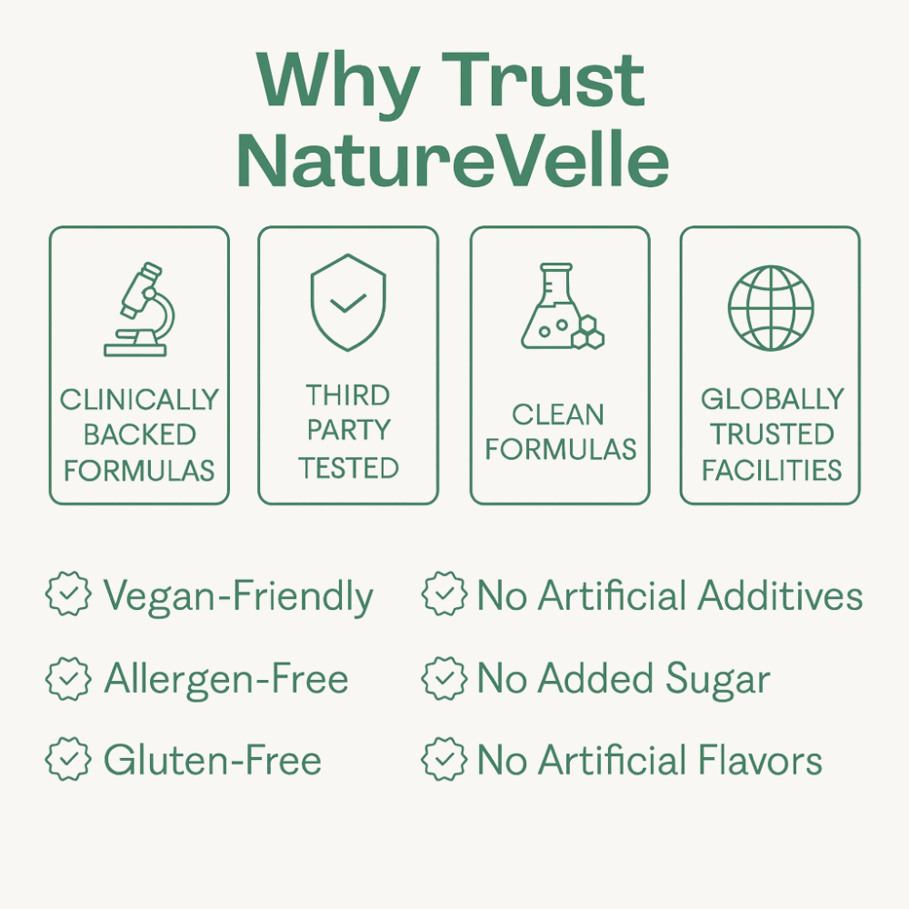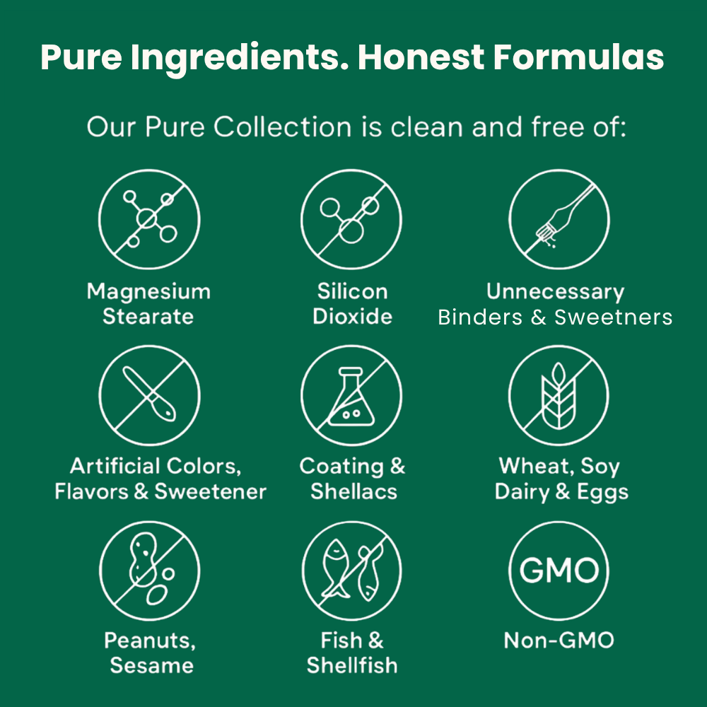 Every ingredient in our formula has a clear purpose—chosen for its proven benefits, not for show. We don’t rely on fancy buzzwords or secret blends. Just transparent, clinically backed ingredients, each included at a dose that truly makes a difference.